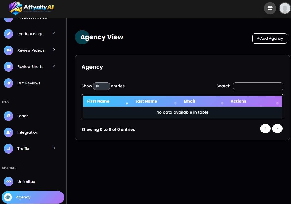 Your AffynityAI Agency Account!